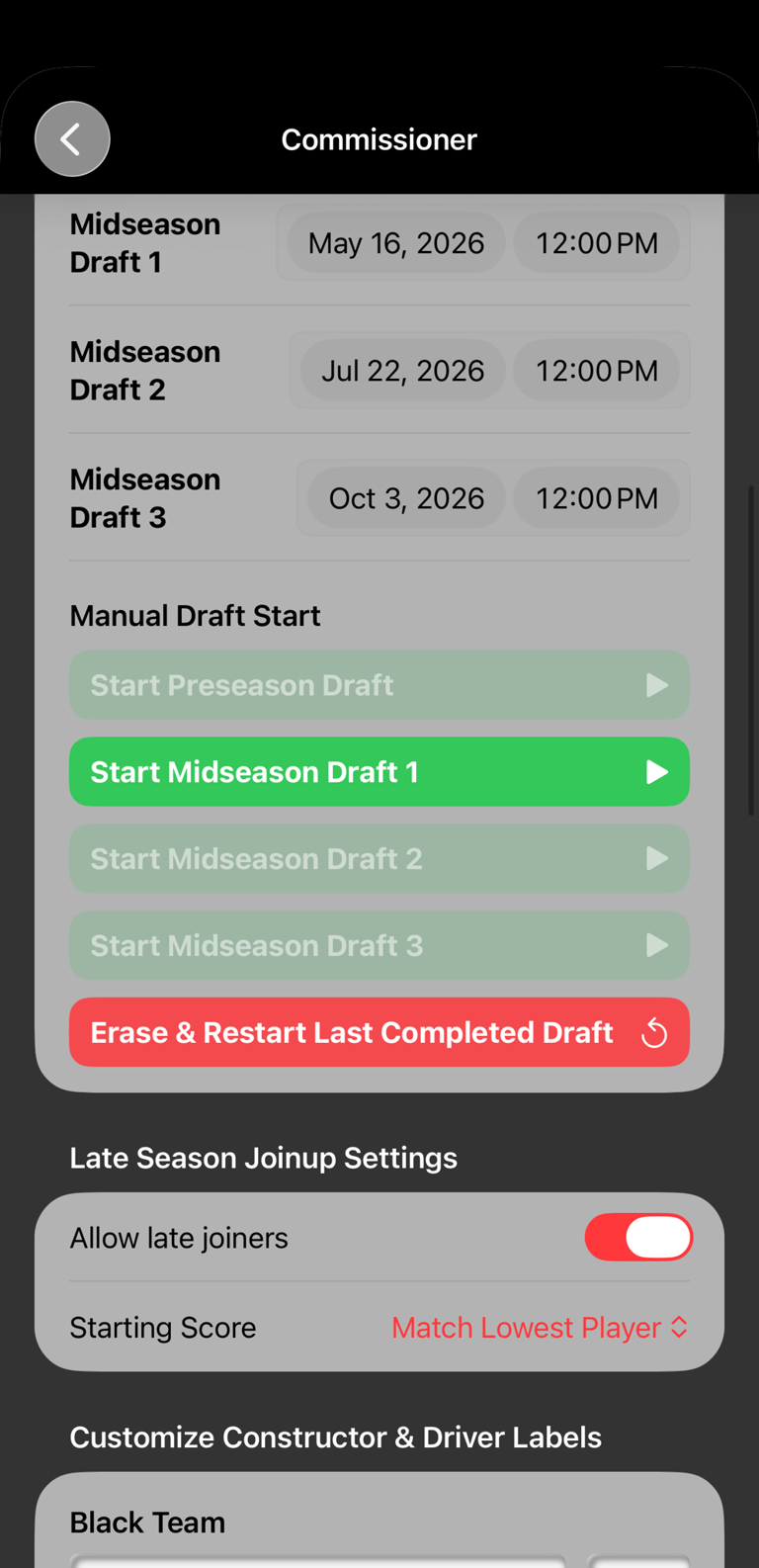 A: It's never too late! Commissioners choose when the first draft of the season will occur, it does not matter if real races have occurred or not. After your league holds its first draft, the game is on and scoring begins!