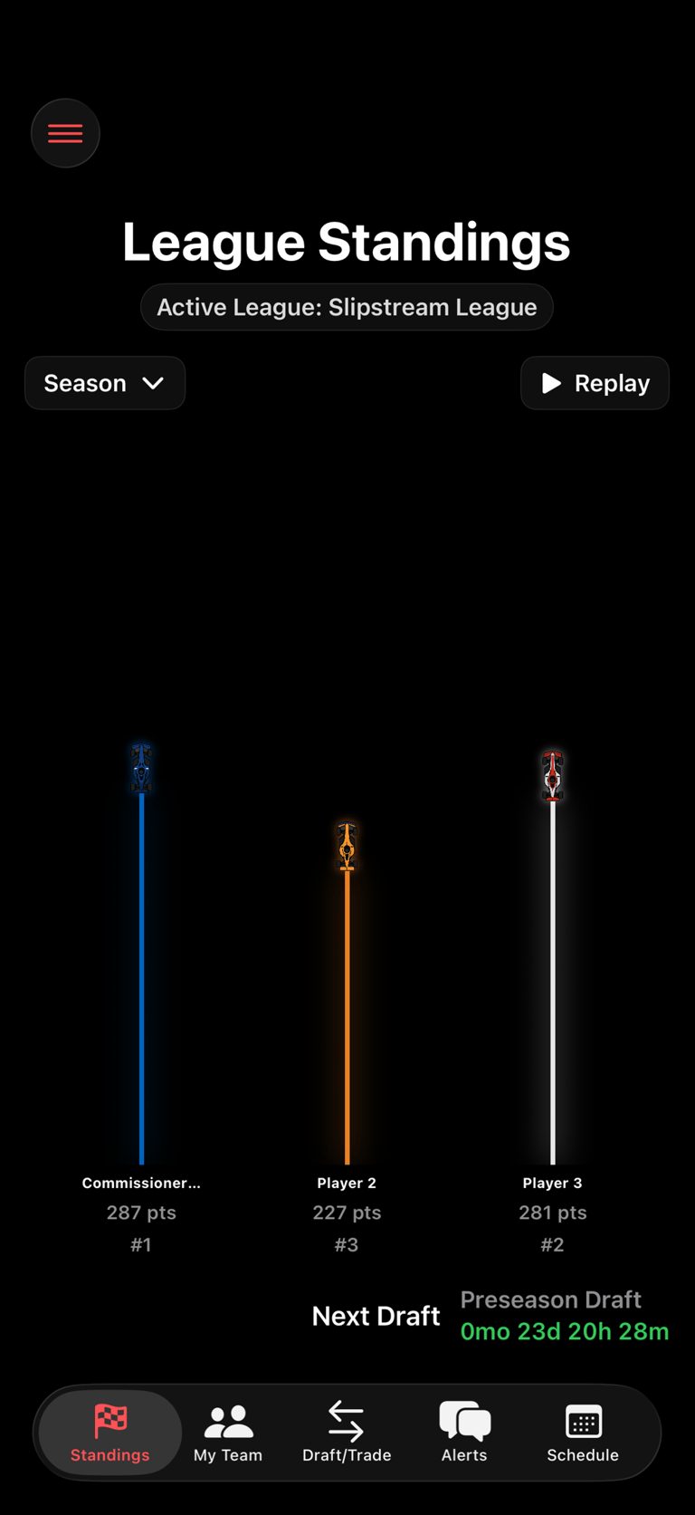 The premier fantasy racing platform for draft-based league play.