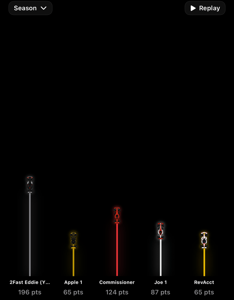 The premier streamlined, draft-based fantasy platform tracking Grand Prix racing events. Create a private league for friends, family, or the office...or join a public league to compete with other racing fans worldwide. Draft your drivers and constructor, adjust your composition with timely free-agent trades, and advance your scores as the season progresses.